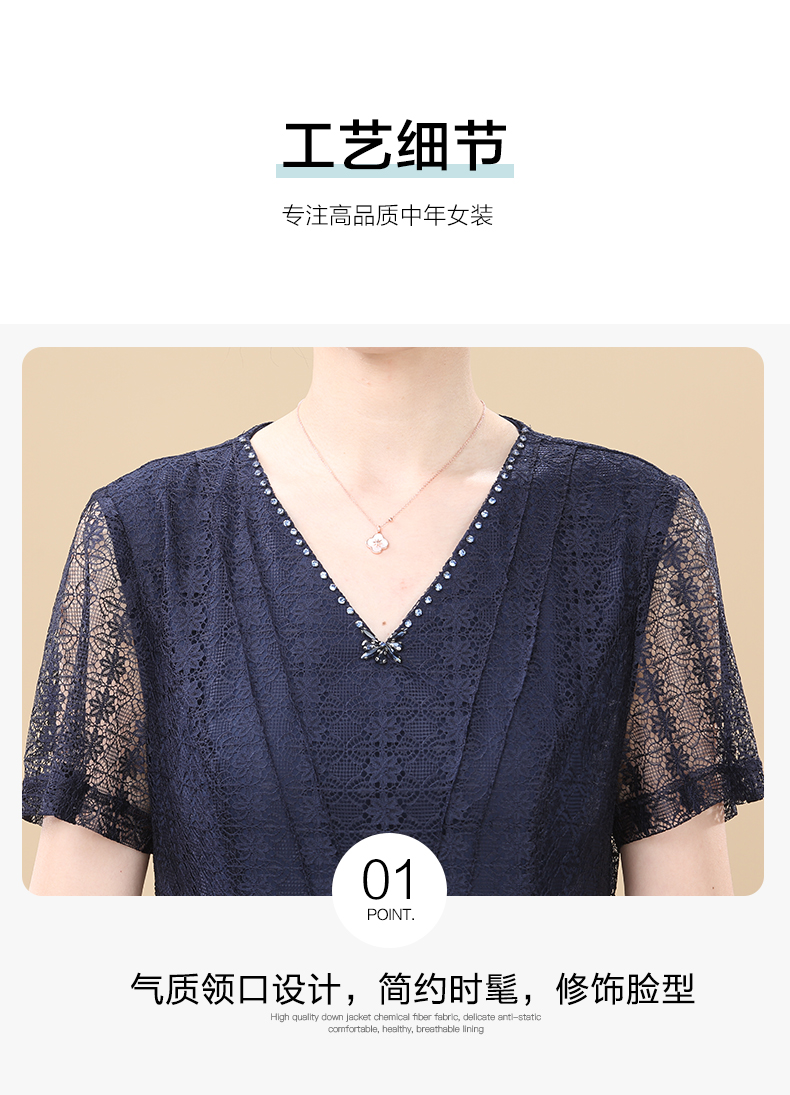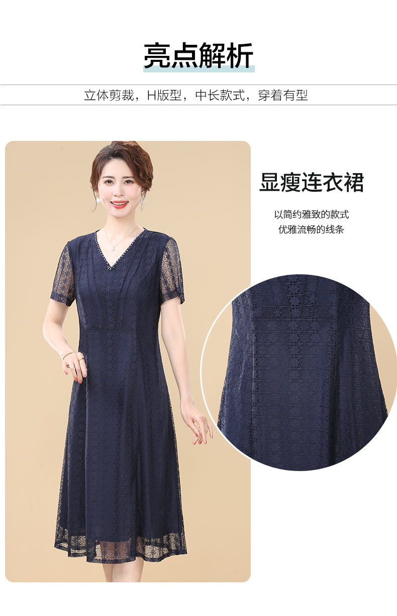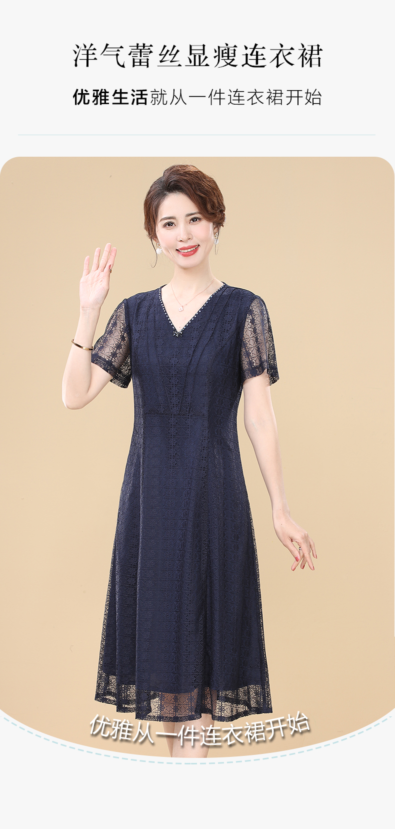 甘甘的世界2025夏新款时尚中年女士减龄连衣裙洋气短袖网纱中...