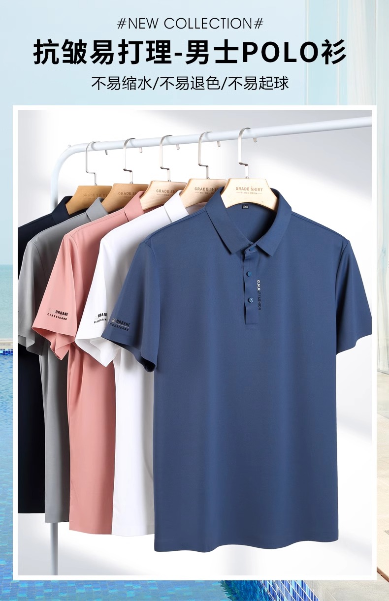 2025新款无痕polo衫短袖男士商务休闲夏季弹力抗皱透气翻...