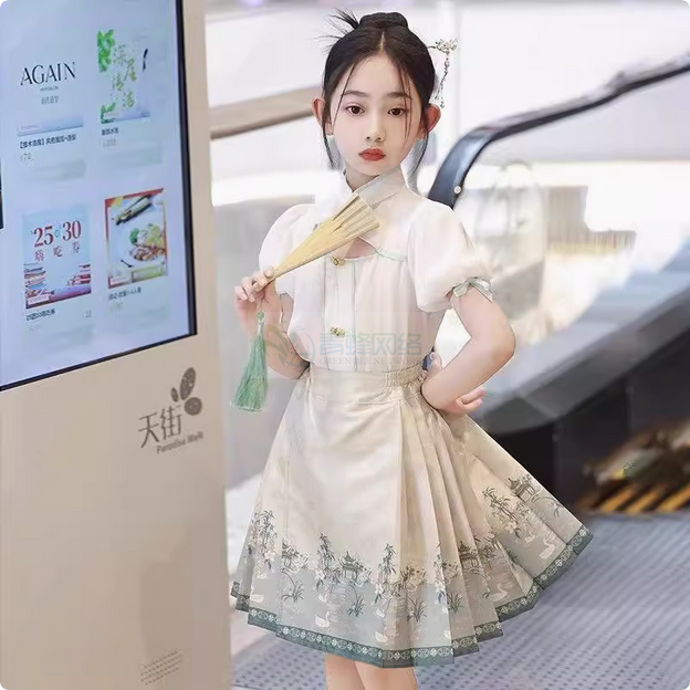 女童马面裙2025新款夏季中式民族风女孩改良汉服中秋时尚两件...