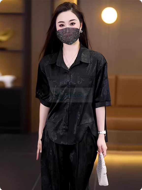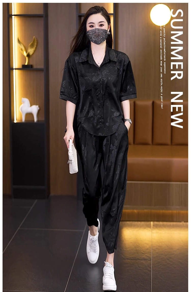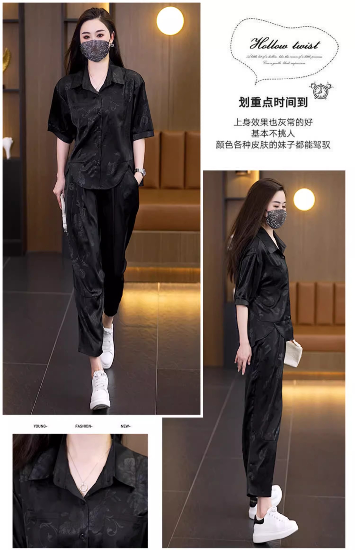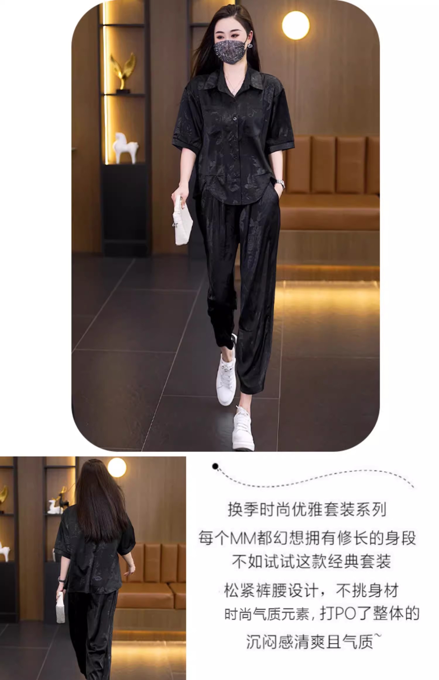 高端免烫时尚套装女2025夏季新款胖妹妹大码宽松显瘦抗皱两件...